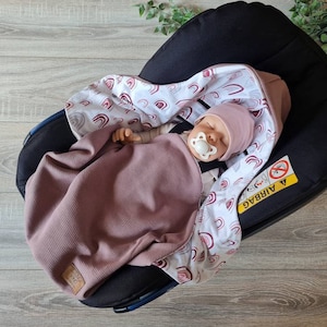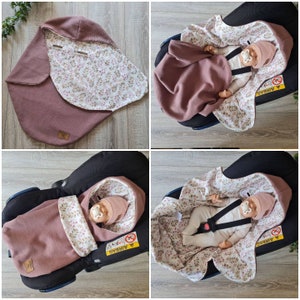 The three-point seat belts of the baby seat can be easily guided through the sewn-in belt holes. This means your baby can be buckled and unbuckled perfectly. If it does get too warm in the car, the blanket can simply be opened and the little sparrow still stays strapped in.