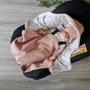 The three-point seat belts of the baby seat can be easily guided through the sewn-in belt holes. This means your baby can be buckled and unbuckled perfectly. If it does get too warm in the car, the blanket can simply be opened and the little sparrow still stays strapped in.